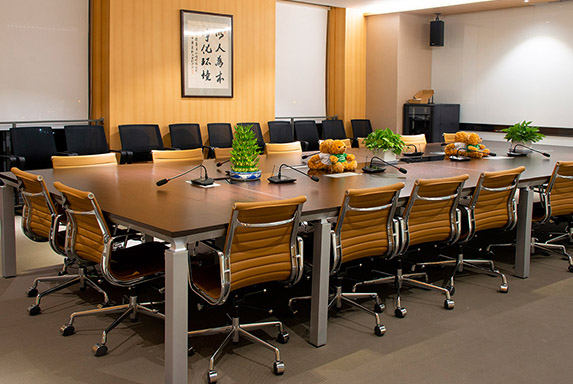 同時可以配置接待前台在背景牆的前端,讓企業文化與接待融為一體,讓進入公司的員工或客人一目了然。這裏的背景牆可以適當應運與周圍場景不一樣的顏色,使其較為醒目;或是背景牆上的logo或企業名稱字樣可使用發光材質,以達到醒目的效果。